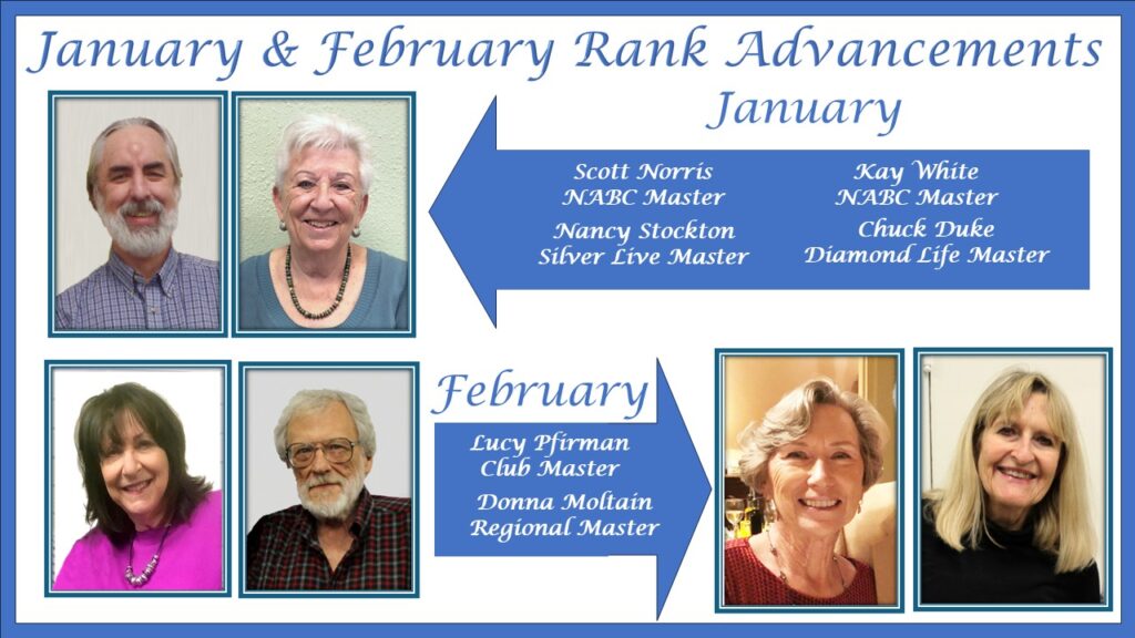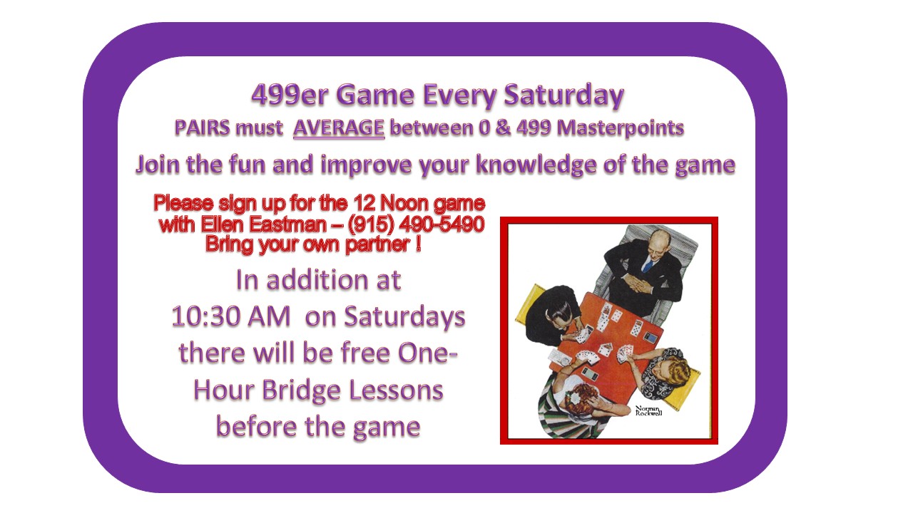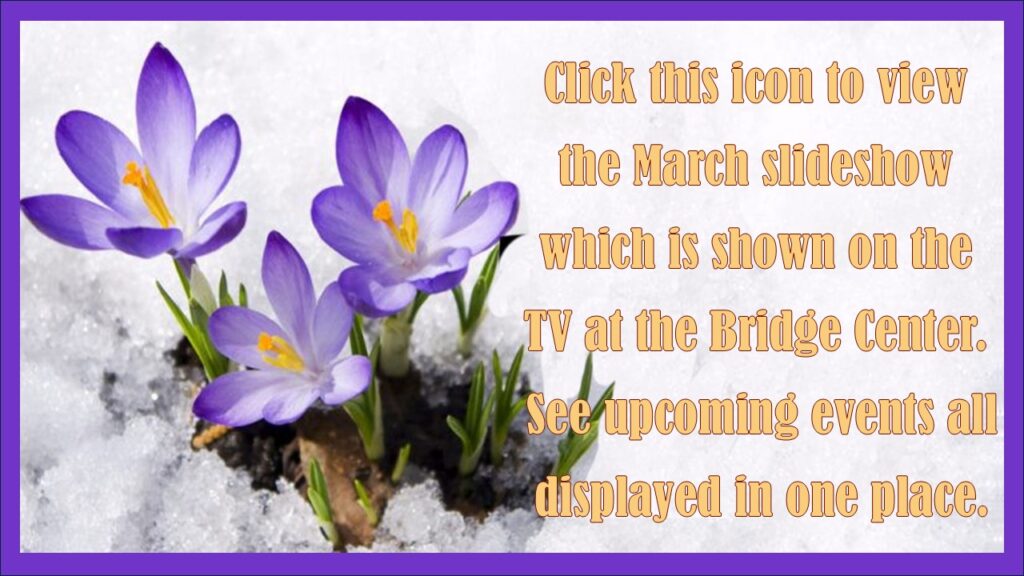 Bridge lesson schedule is on Bridge Lessons page.
