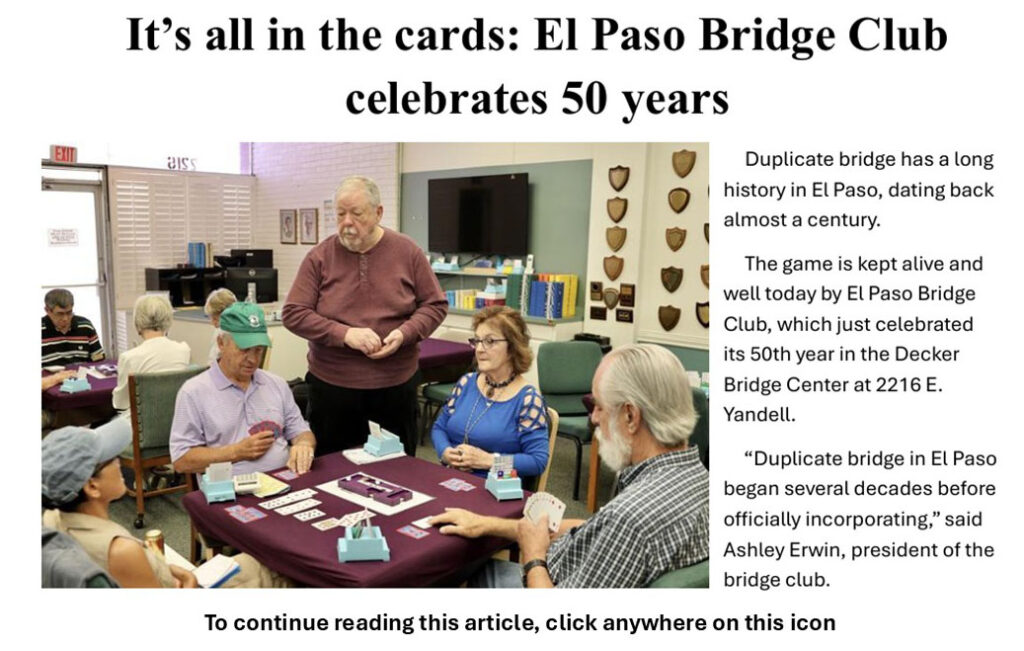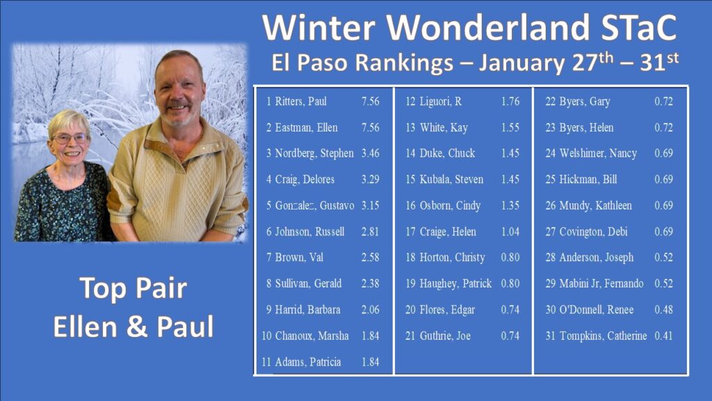 Click here to view 2023 to 2024 special events and new Life Master Patti Nickerson.