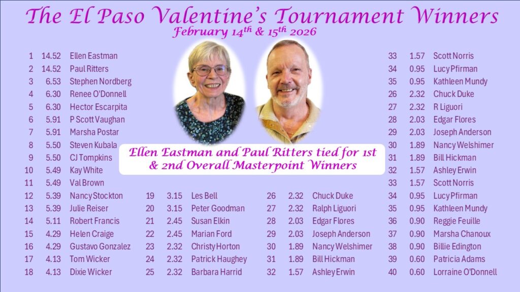 Click here to view Las Cruces Tourney El Paso Winners April 2024
